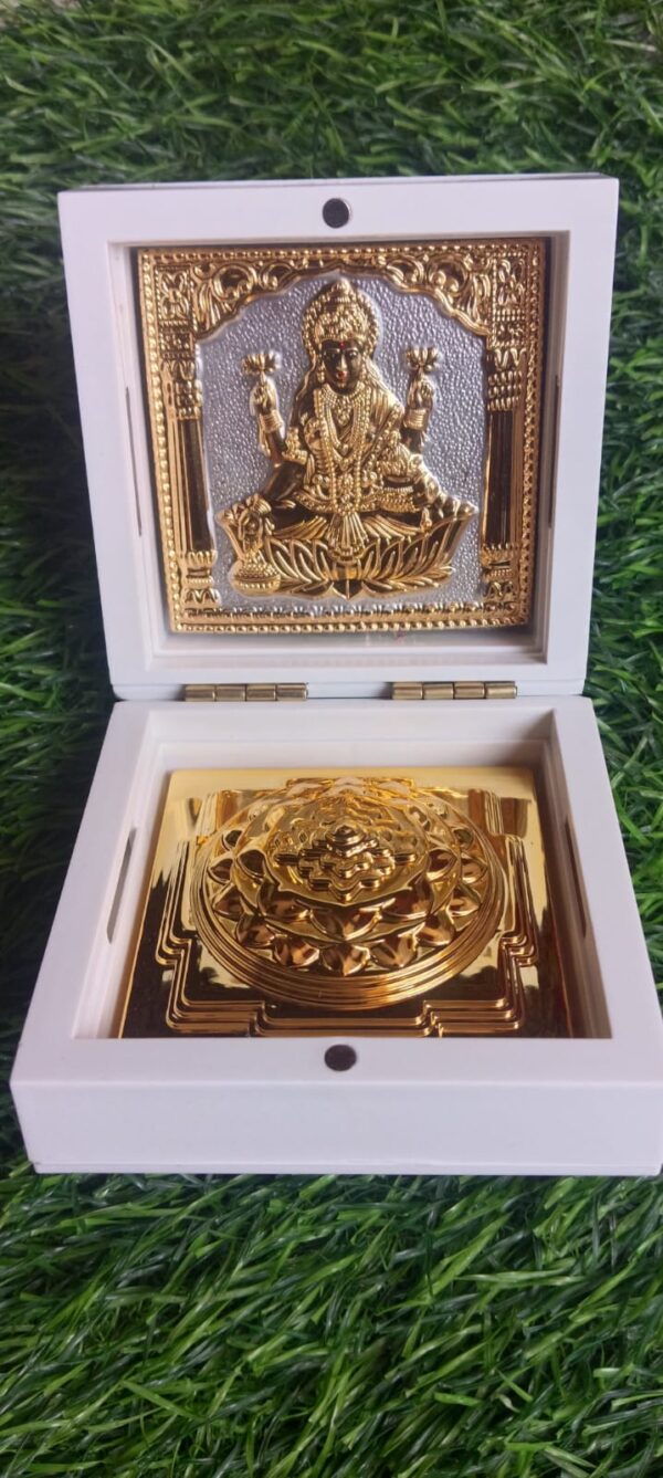 Bring divine blessings, prosperity and positive energy to your home or workplace with this beautifully crafted Shree Yantra with Goddess Laxmi frame. This compact set is ideal for Navratri, Diwali pooja, business success, and wealth attraction.